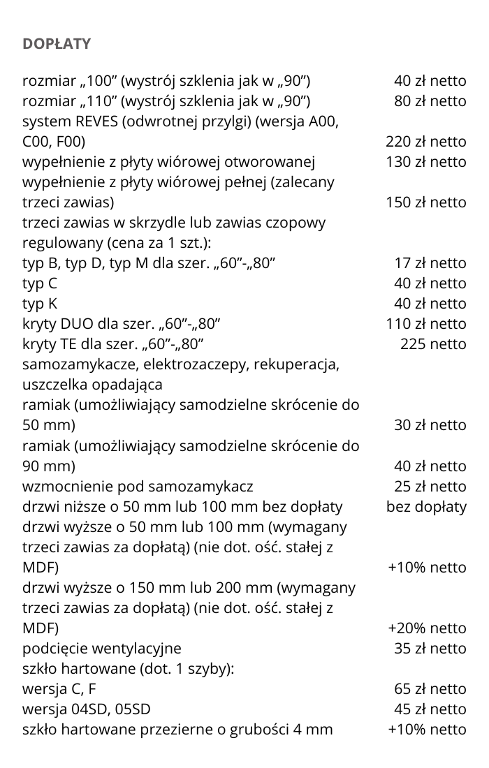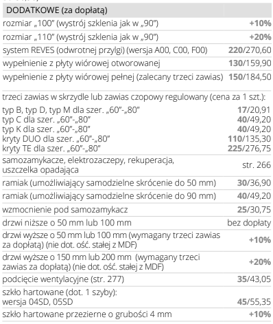 Możliwość wykonania za dopłatą w standardzie: bezprzylgowe, rewersyjne.