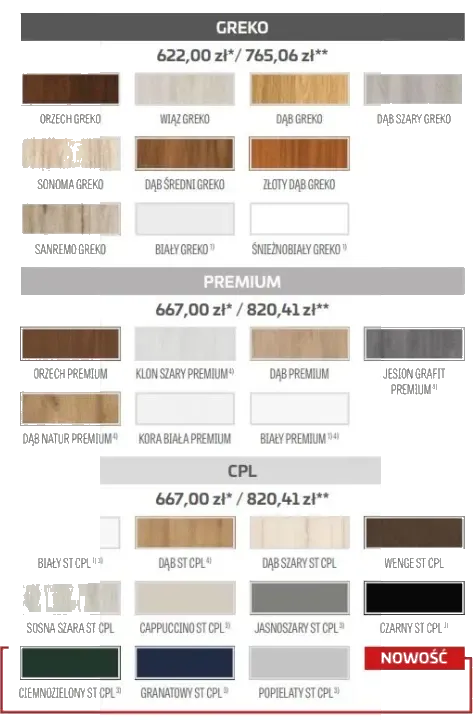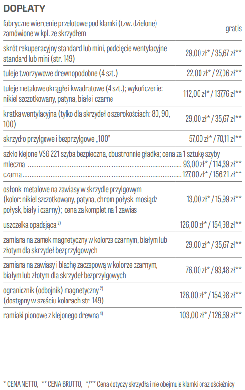Możliwość wykonania za dopłatą w standardzie: bezprzylgowe, rewersyjne.