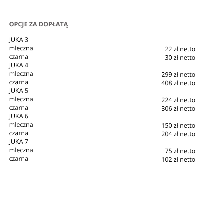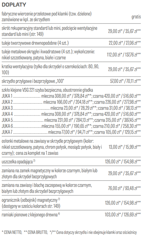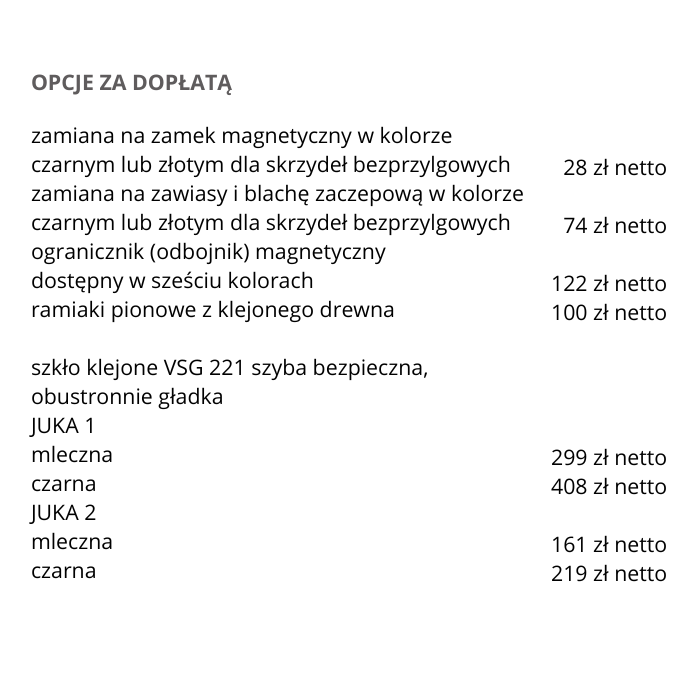 Możliwość wykonania za dopłatą w standardzie: bezprzylgowe, rewersyjne.