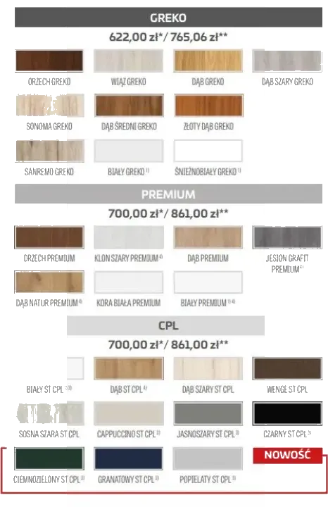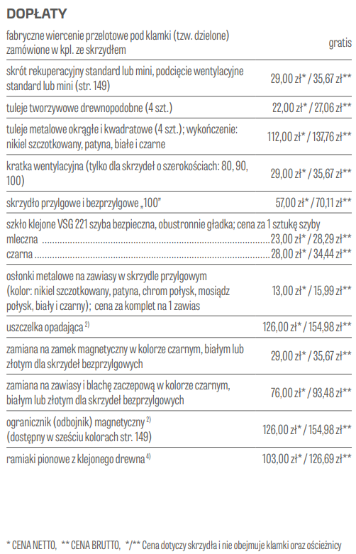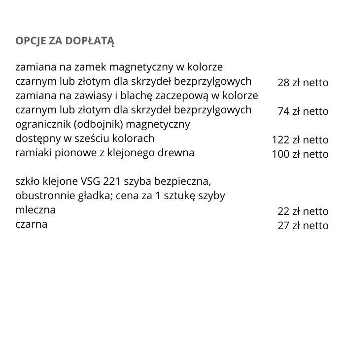 Możliwość wykonania za dopłatą w standardzie: bezprzylgowe, rewersyjne.