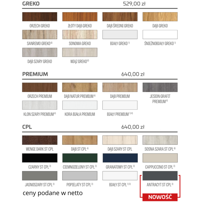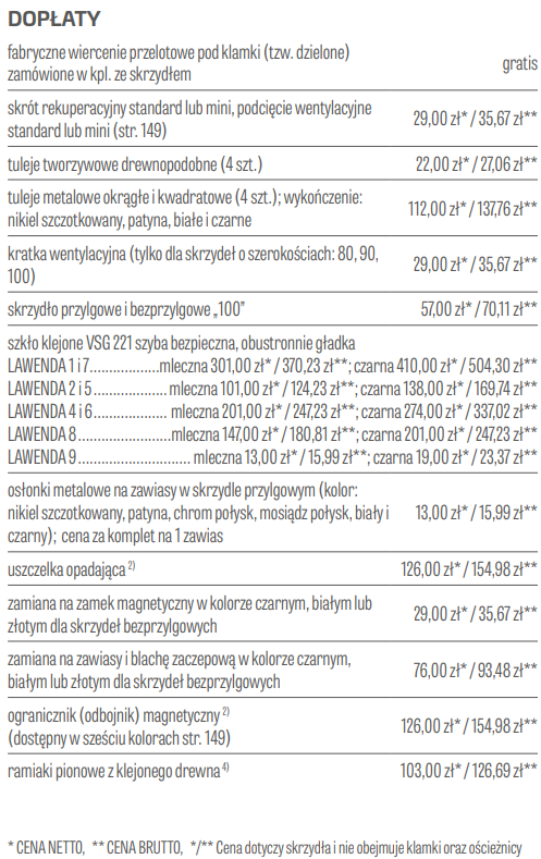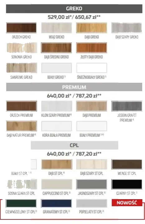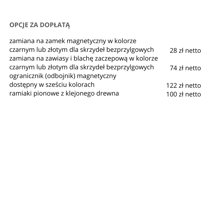 Możliwość wykonania za dopłatą w standardzie: bezprzylgowe, rewersyjne.