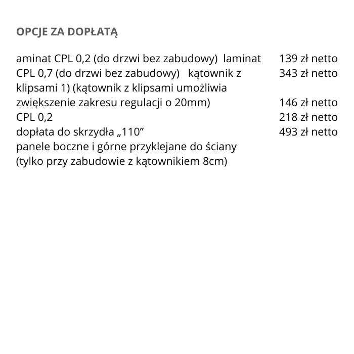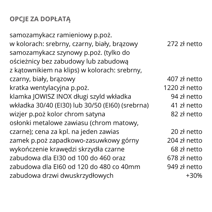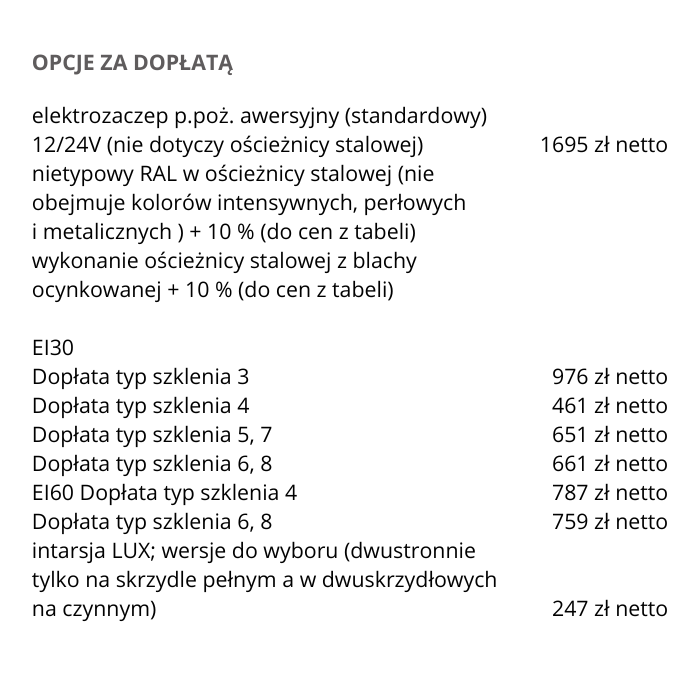 skrzydło LEDA EI60 + ościeżnica stalowa kątowa duża – za dopłatą: od 282,96 zł brutto