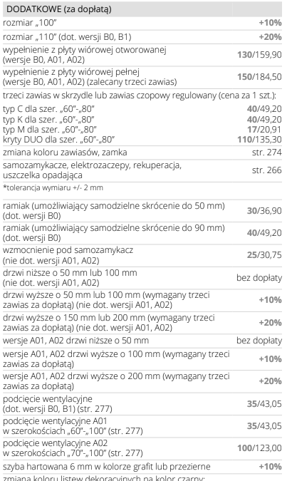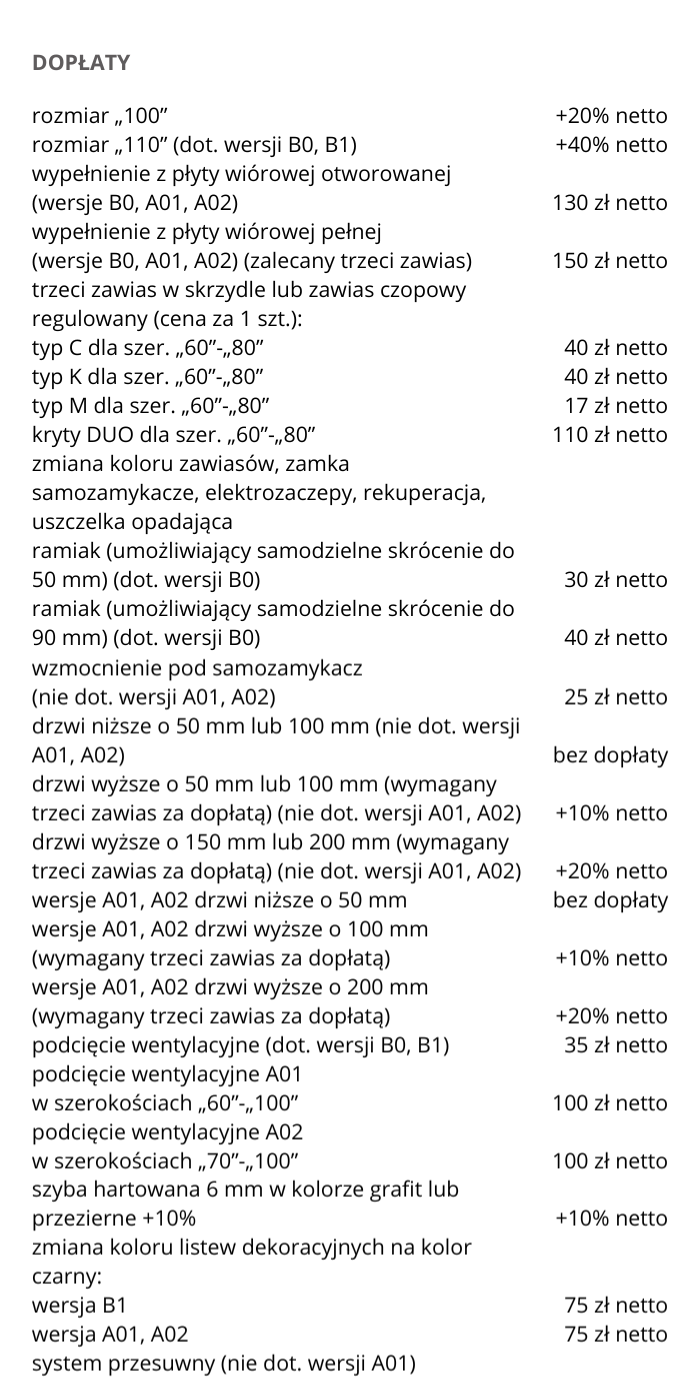 Możliwość wykonania za dopłatą w standardzie: bezprzylgowe, rewersyjne.