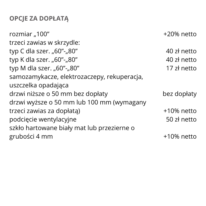 Możliwość wykonania za dopłatą w standardzie: bezprzylgowe.