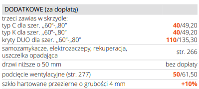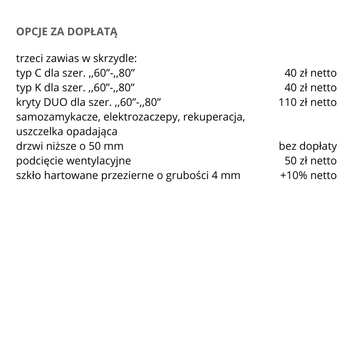 Możliwość wykonania za dopłatą w standardzie: bezprzylgowe.