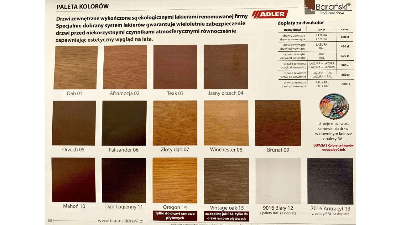 Cena dotyczy modelu wraz z ościeżnicą, okuciami i klamką.