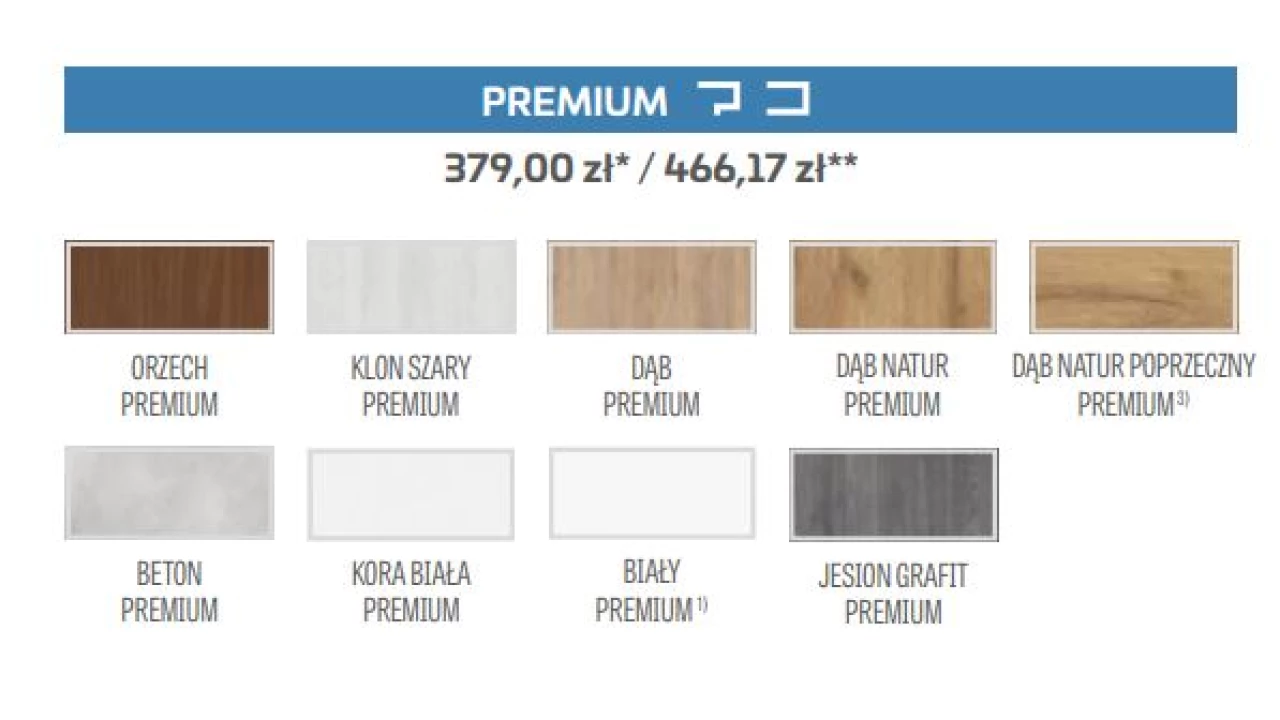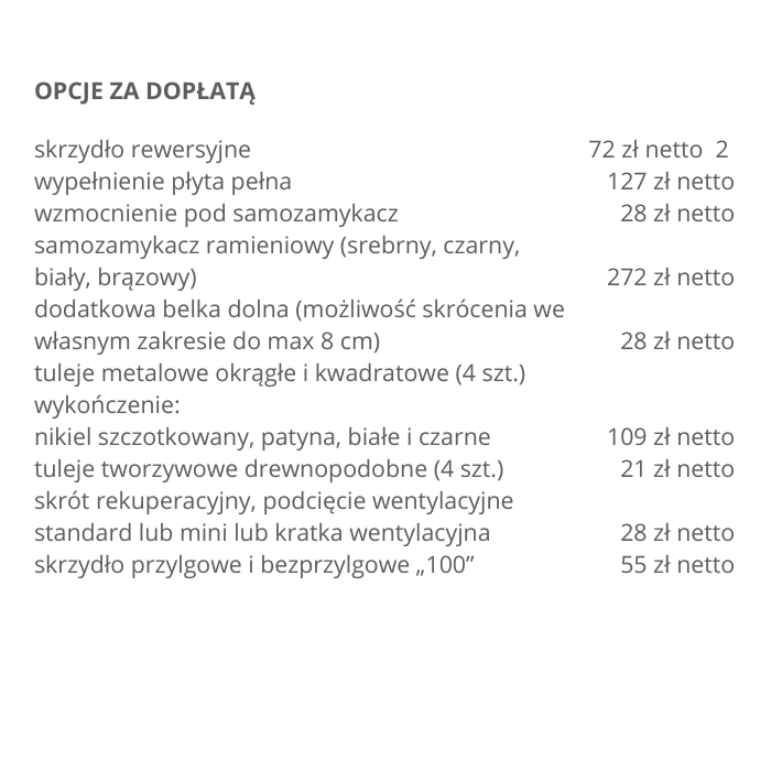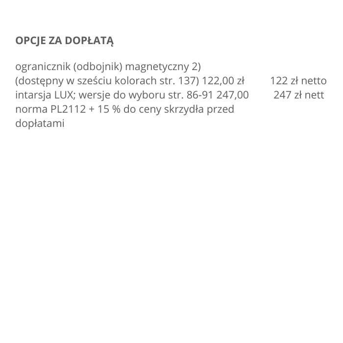 Możliwość wykonania za dopłatą w standardzie: bezprzylgowe, rewersyjne.