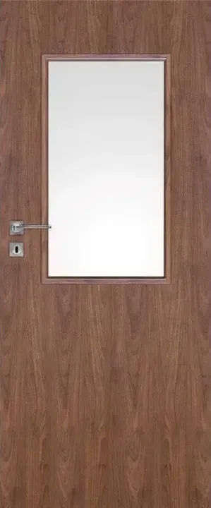 Drzwi techniczne przeznaczone są do stosowania jako drzwi wewnętrzne wejściowe. Funkcje przeciwpożarowe, dymoszczelne i akustyczne zapewnia wyłącznie montaż kompletnego zestawu. Wyposażenie drzwi: » wypełnienie płyta wiórowa Halspan 44 mm w EI30 lub 54 mm w EI60 z doklejonymi po obwodzie listwami z klejonki iglastej » krawędź prosta, ramka przyszybowa zaokrąglona rys. 1 » szyba ognioodporna przeźroczysta (zmienna szerokość zależna od rozmiaru skrzydła) » uszczelki pęczniejące – dymoszczelne » 3 zawiasy » zamek na wkładkę patentową » próg opadający Kolorystyka skrzydła drzwiowego dostępna w galerii zdjęć.