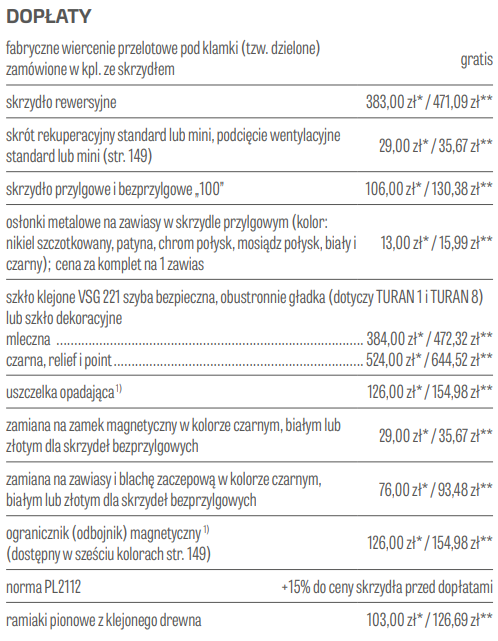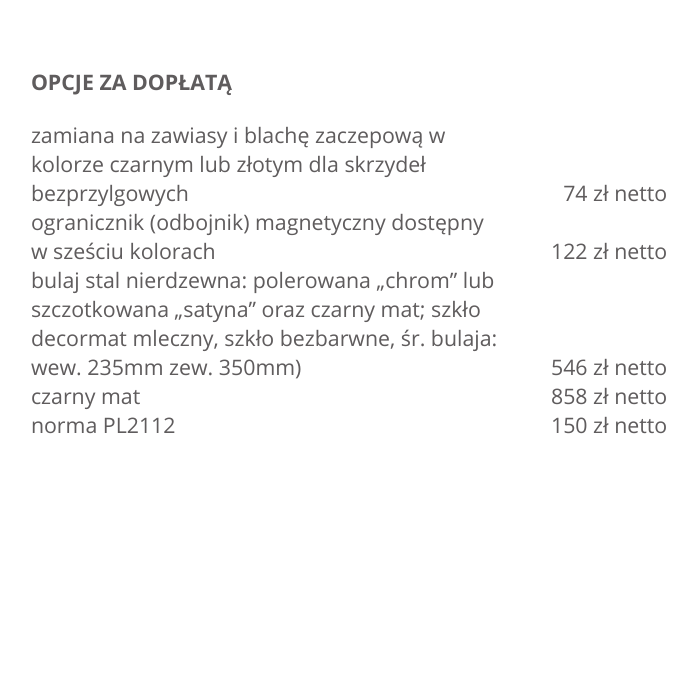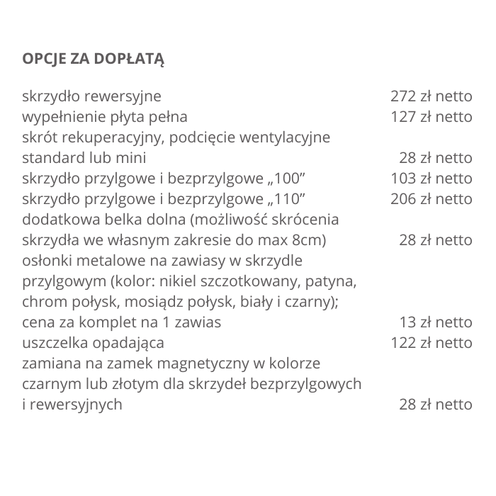 Możliwość wykonania za dopłatą w standardzie: bezprzylgowe, rewersyjne.