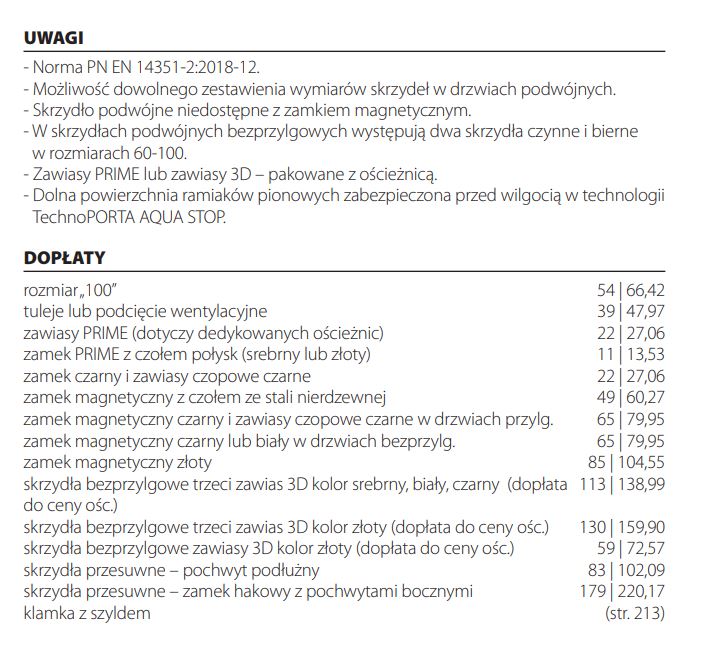 * Cena dotyczy skrzydła drzwiowego (VAT 8%)