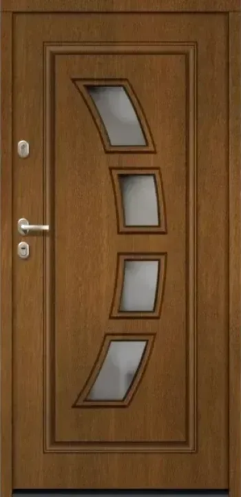 Grupy TT OPTIMA charakteryzuje się bardzo dobrymi parametrami izolacyjności termicznej oraz akustycznej. Osiągnięte to zostało między innymi dzięki zastosowaniu opatentowanej ościeżnicy PERFOTHERM, pogrubionej blachy poszycia skrzydła drzwi oraz zastosowaniu wypełnienia skrzydła materiałami dźwiękochłonnymi i izolacyjnymi. Dzięki nowoczesnej technologii tłoczenia blachy ozdobne inserty wykonane ze stali nierdzewnej są zlicowane z powierzchnią skrzydła co znacząco poprawia estetykę drzwi. Wyposażenie drzwi: – ościeżnica PERFOTHERM – klamki BLOK z wkładkami A-A – zamek główny 3-ryglowy (klasa 7), i górny (klasa 6) – zawiasy 2D regulowane – nasadki ozdobne na zawiasy – 3 bolce antywyważeniowe – regulowany zaczep zamka – próg aluminiowy/drewniany Kolorystyka dostępna w galerii zdjęć.