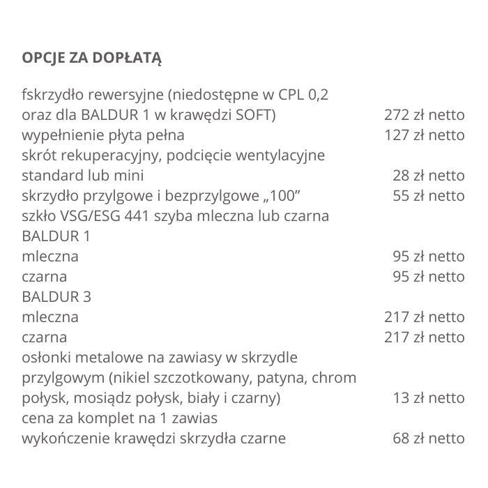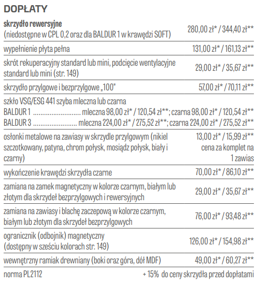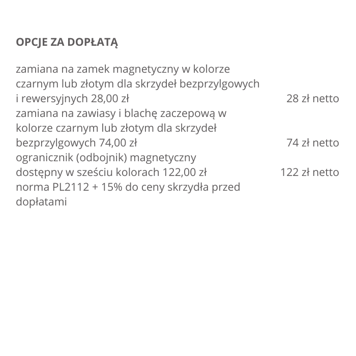 Możliwość wykonania za dopłatą w standardzie: bezprzylgowe, rewersyjne.