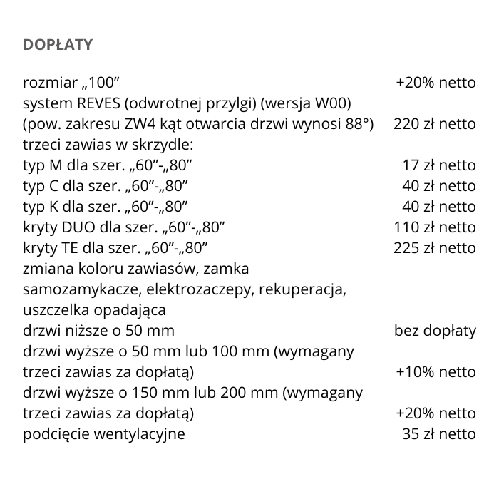 Możliwość wykonania za dopłatą w standardzie: bezprzylgowe, rewersyjne.