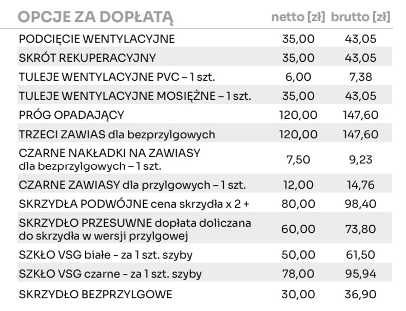Możliwość wykonania za dopłatą w standardzie: bezprzylgowe.