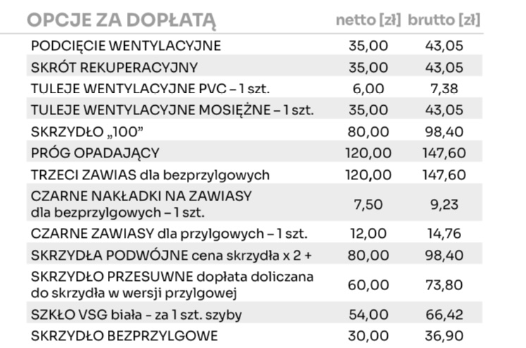 Możliwość wykonania za dopłatą w standardzie: bezprzylgowe.