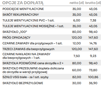Możliwość wykonania za dopłatą w standardzie: bezprzylgowe.