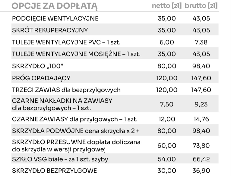 Możliwość wykonania za dopłatą w standardzie: bezprzylgowe.