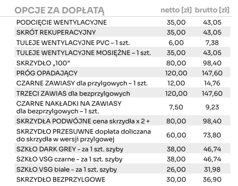Możliwość wykonania za dopłatą w standardzie: bezprzylgowe.