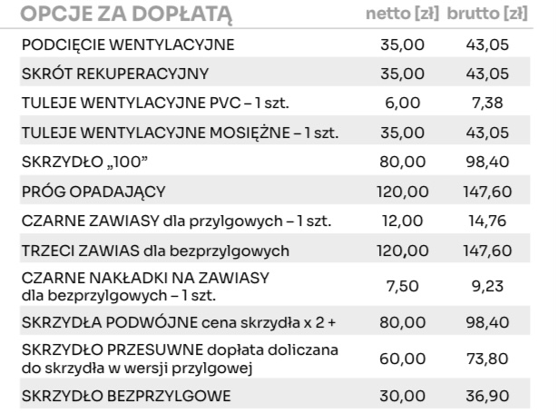 Możliwość wykonania za dopłatą w standardzie: bezprzylgowe.