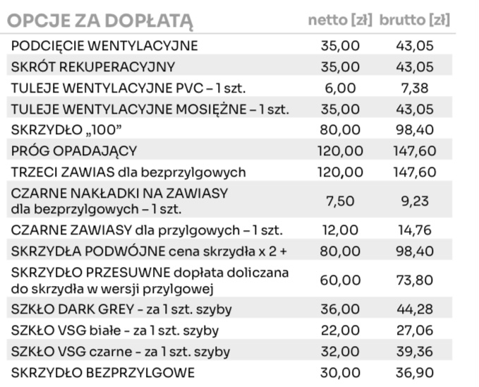 Możliwość wykonania za dopłatą w standardzie: bezprzylgowe.