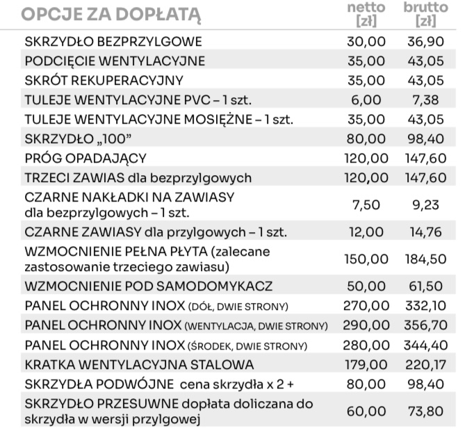 Możliwość wykonania za dopłatą w standardzie: bezprzylgowe.