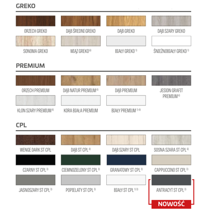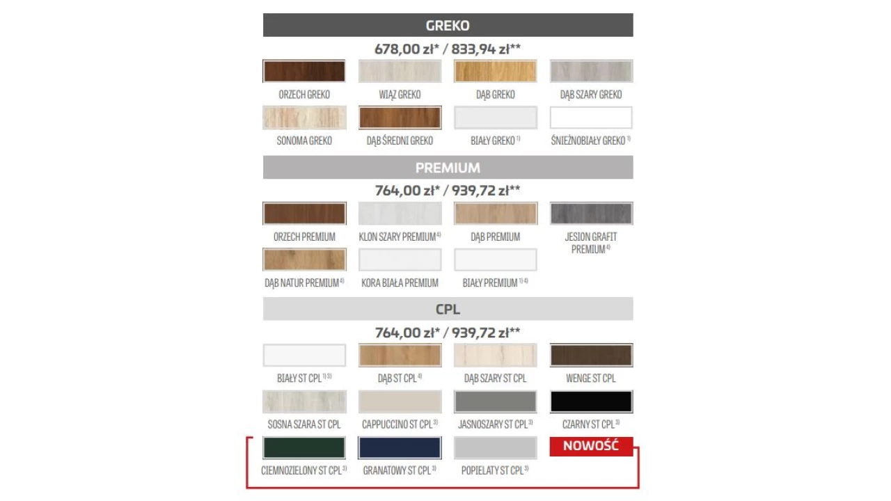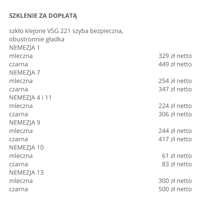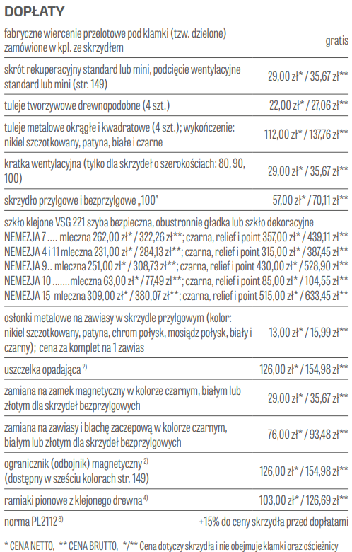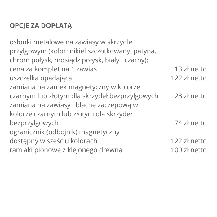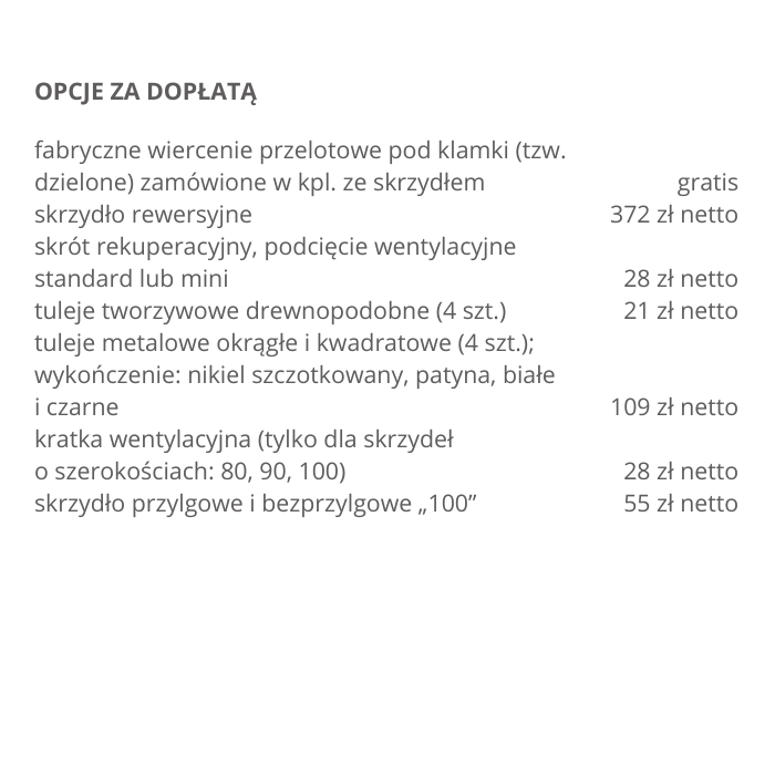 Możliwość wykonania za dopłatą w standardzie: bezprzylgowe, rewersyjne.