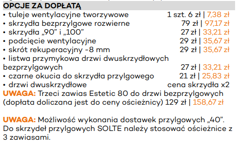 Możliwość wykonania za dopłatą w standardzie: bezprzylgowe.