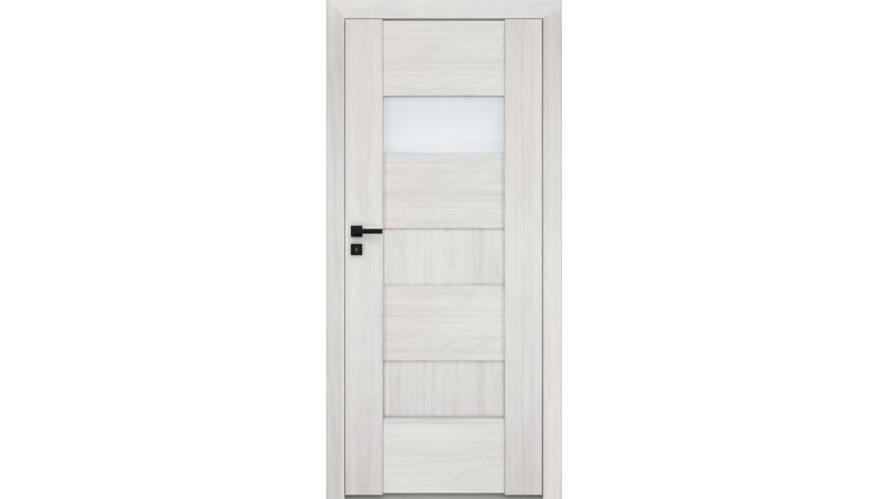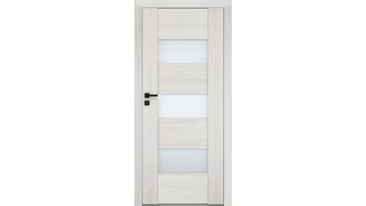 Skrzydła ramowe wykonane są w całości z płyty MDF. Grubość ramiaków pionowych wynosi 40 mm, a szerokość wynosi 160 mm, co zapewnia trwałą konstrukcję skrzydła drzwiowego. W drzwiach zastosowano szybę MAT DRE o grubości 4 mm oraz płyciny płaskie HDF. Kolorystyka i wzory skrzydła drzwiowego dostępne w galerii zdjęć.