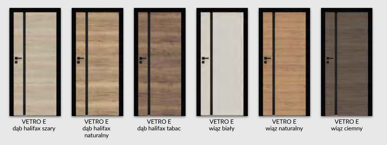Rama skrzydła wykonana została z płyty drewnopodobnej wzmocnionej sklejką oraz obłożona jest obustronnie płytą HDF pokrytą laminatem synchronicznym. W drzwiach zastosowano szybę laminowaną hartowaną DECORMAT o grubości 8mm. Kolorystyka i wzory skrzydła drzwiowego dostępne w galerii zdjęć.
