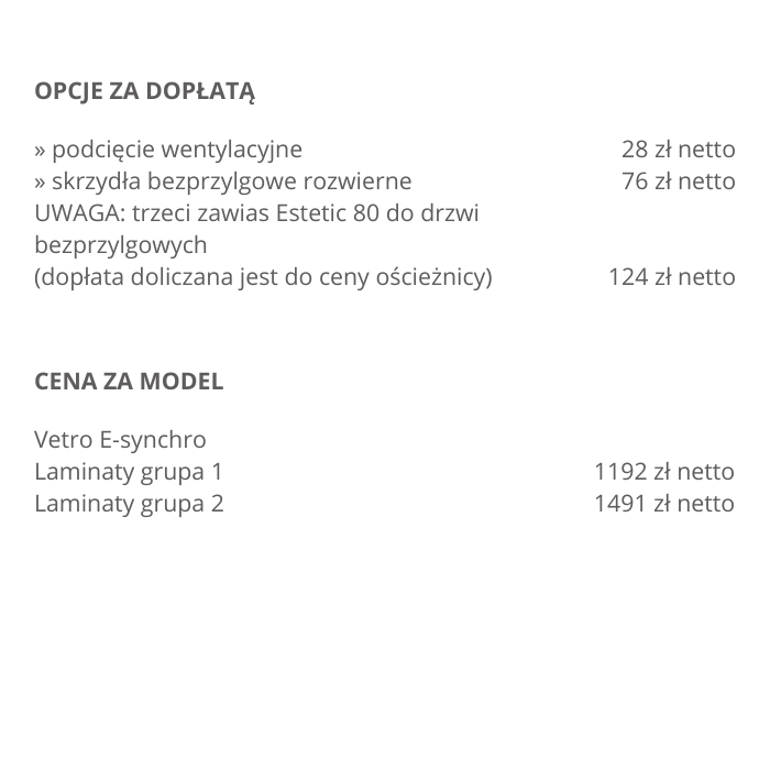Możliwość wykonania za dopłatą w standardzie: bezprzylgowe.