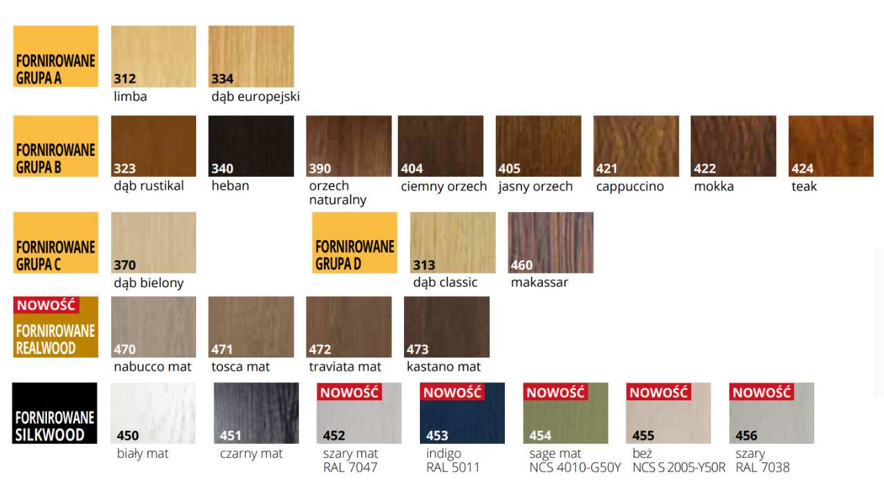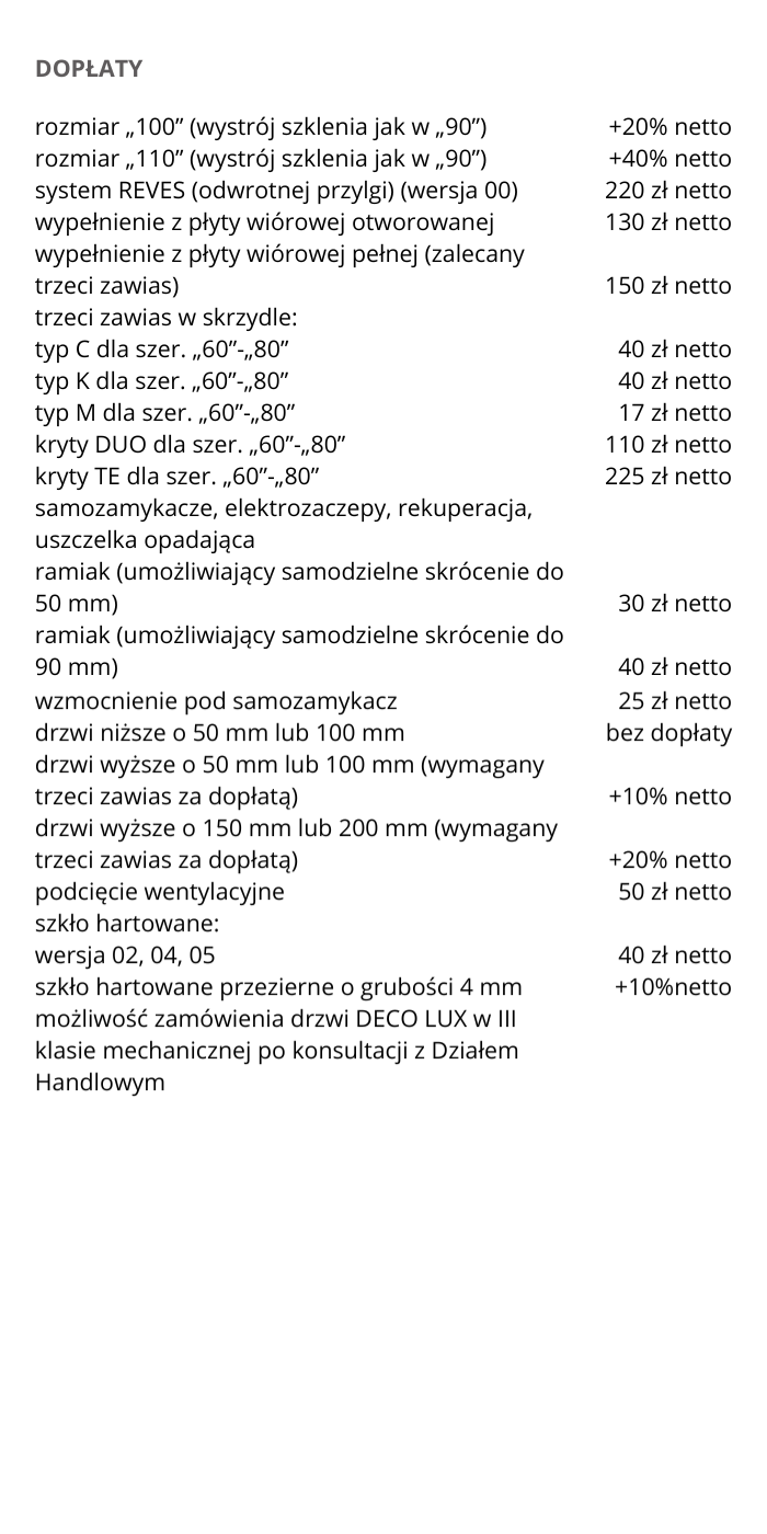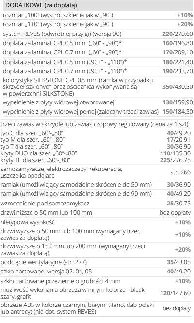Możliwość wykonania za dopłatą w standardzie: bezprzylgowe, rewersyjne.