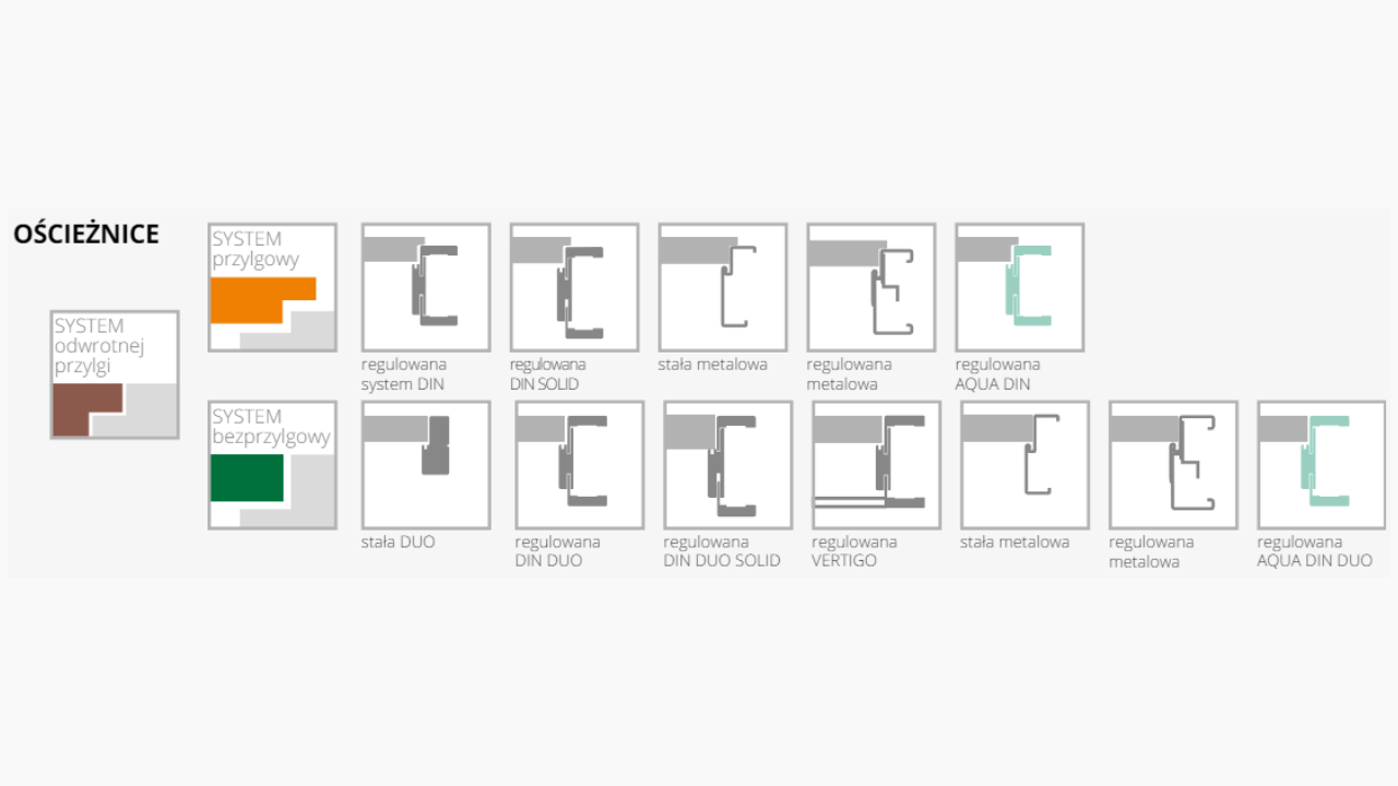 - zawiasy: typ K – do ościeżnicy system DIN, typ C – do ościeżnicy