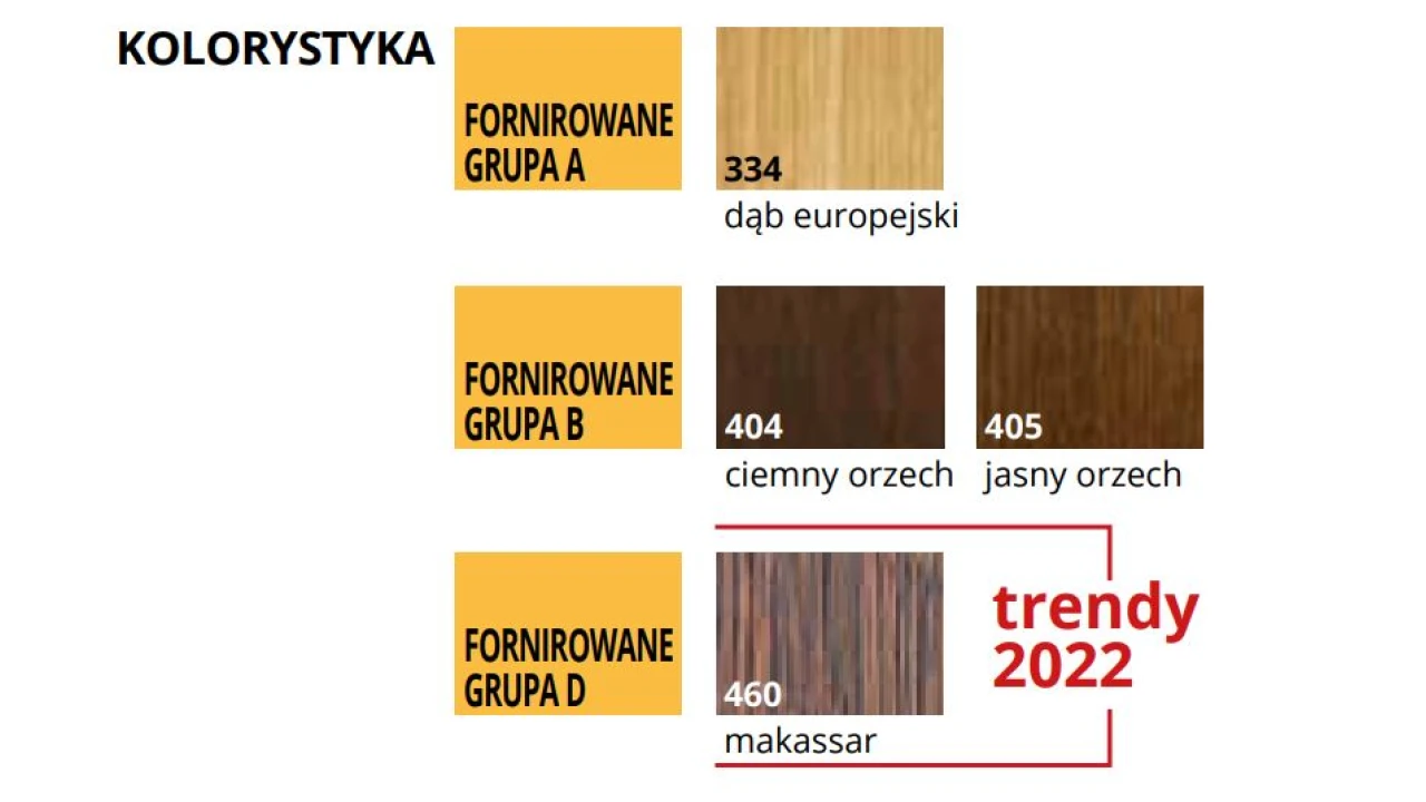 - perfekcyjne połączenie czerni i oklein naturalnych ekologiczny lakier UV zapewnia trwałość koloru oraz odporność na zarysowania
