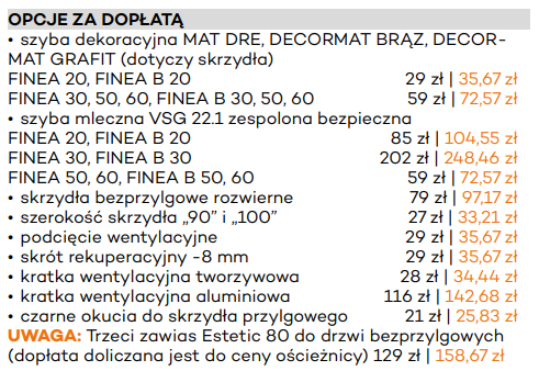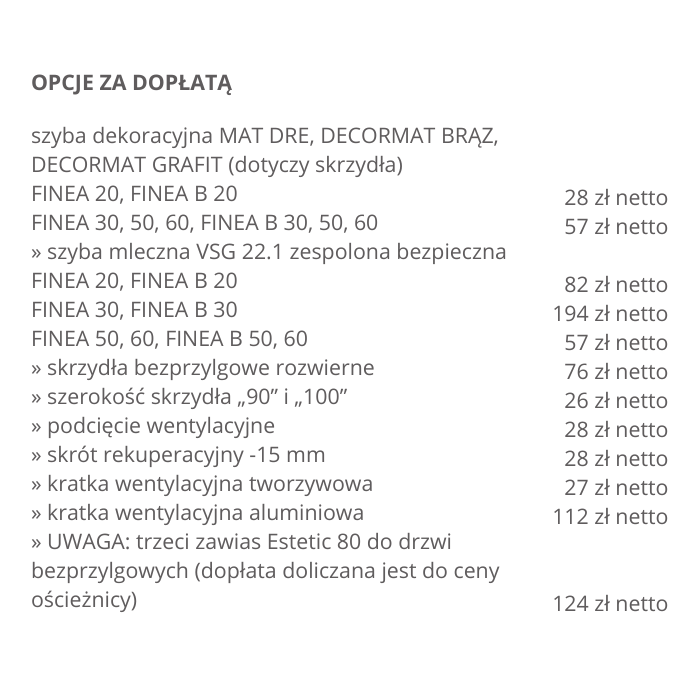 Możliwość wykonania za dopłatą w standardzie: bezprzylgowe.