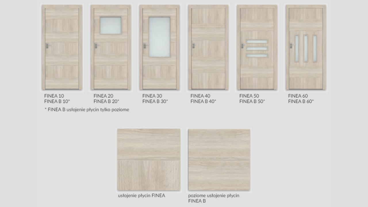 Drzwi wewnętrzne DRE Finea to uniwersalny model, który doskonale sprawdzi się zarówno w klasycznych jak i nowoczesnych aranżacjach. Dzięki szerokiej ofercie oklein, z łatwością dobierzemy kolorystykę pasującą do naszych pomieszczeń. Kolorystyka i wzory skrzydła drzwiowego dostępne w galerii zdjęć.