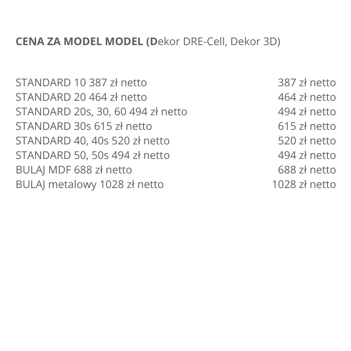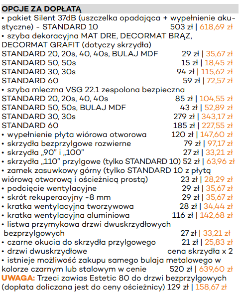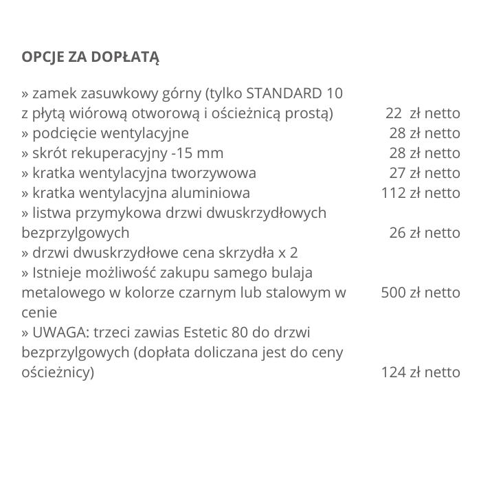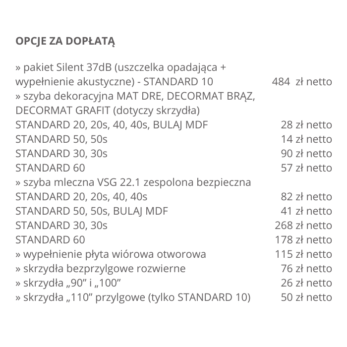 Możliwość wykonania za dopłatą w standardzie: bezprzylgowe.
