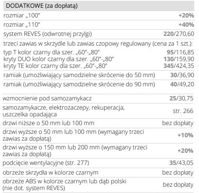 Możliwość wykonania za dopłatą w standardzie: bezprzylgowe, rewersyjne.