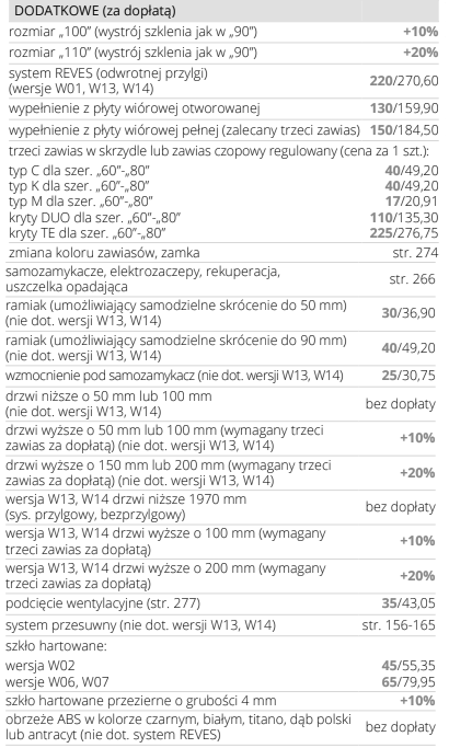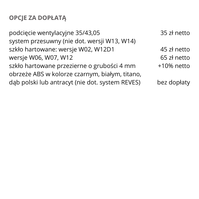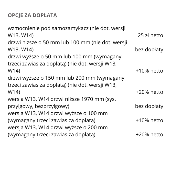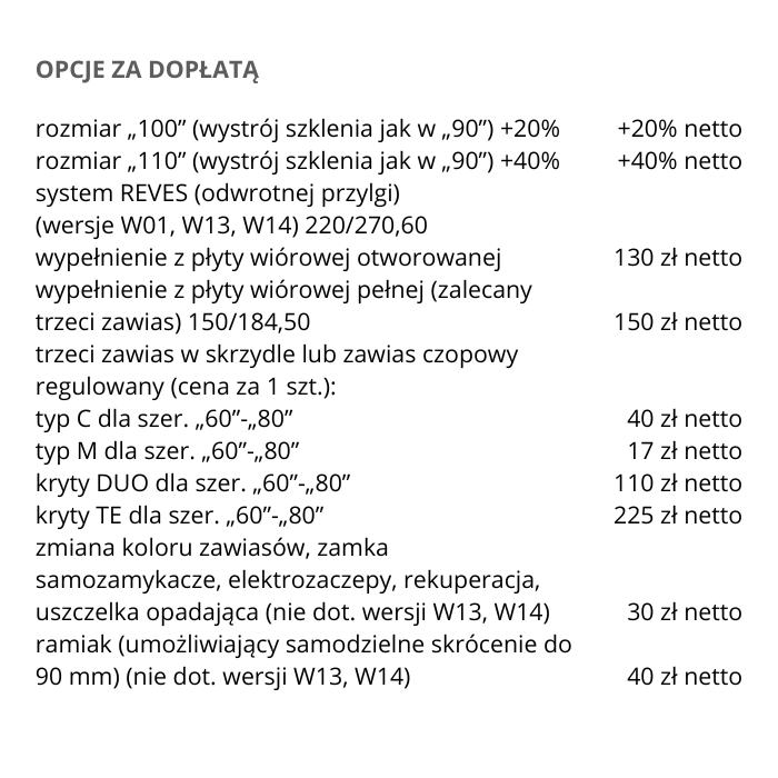 Możliwość wykonania za dopłatą w standardzie: bezprzylgowe, rewersyjne.