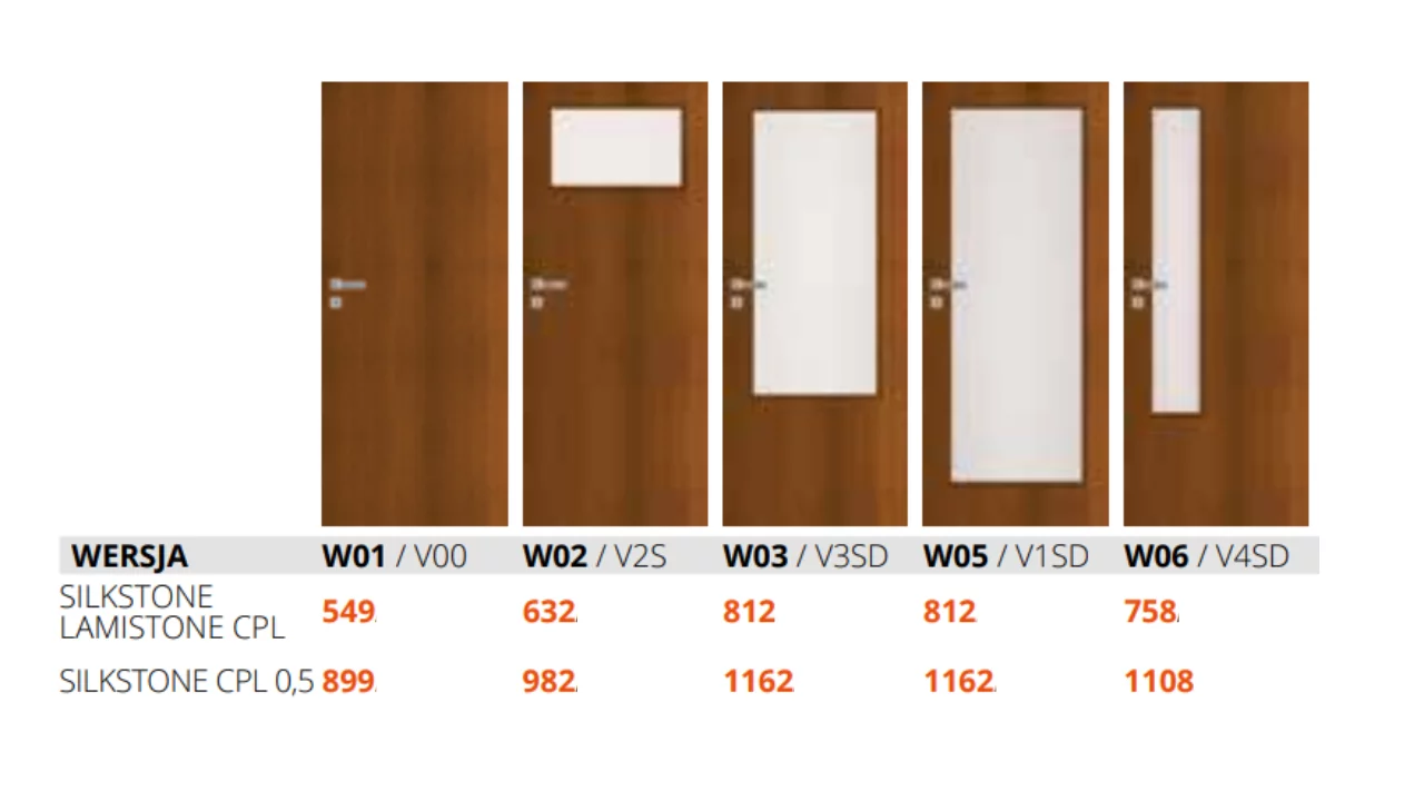 Prezentujemy gładkie skrzydło z serii Impuls. Skrzydło odporne na wycieranie i działanie środków chemicznych dzięki zastosowaniu okleiny LAMISTONE (gładka) lub SILKSTONE (3D struktura drewna). Skrzydło pasujące do nowoczesnych wnętrz z możliwością dostosowania wyglądu do własnych potrzeb dzięki wyborowi jednego z modnych kolorów oklein, a także ościeżnicy czy klamek. Mocna konstrukcja oparta na ramie z wypełnieniem plastrem miodu lub pełną płytą (opcja).