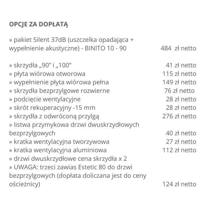 Możliwość wykonania za dopłatą w standardzie: bezprzylgowe, rewersyjne.