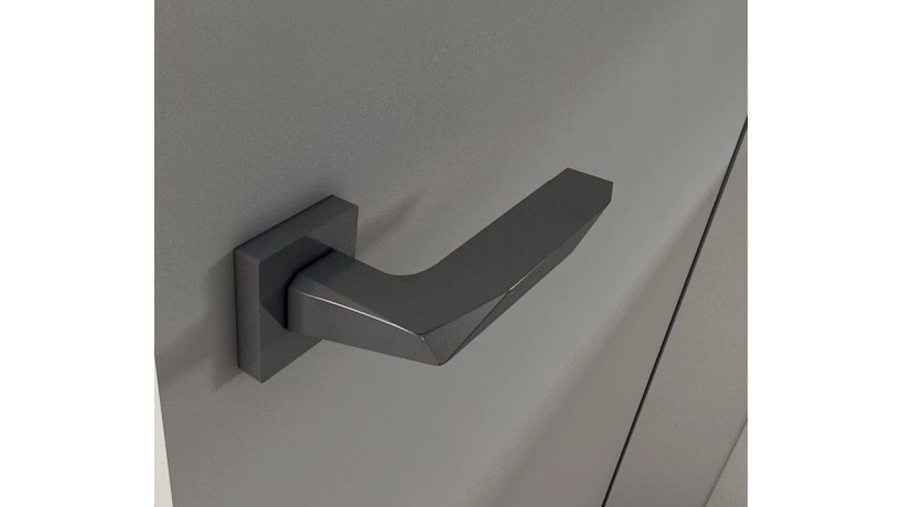 – zamek magnetyczny firmy AGB w kolorze nikiel satyna oraz szara nakładka na zamek.