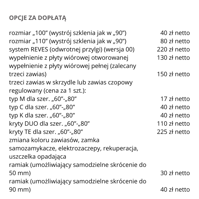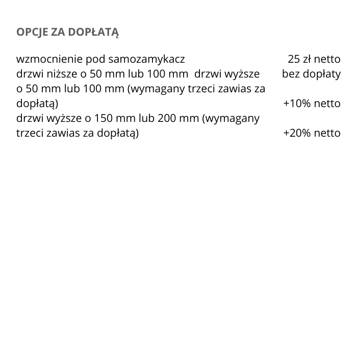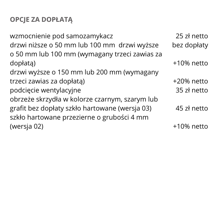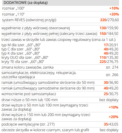 Możliwość wykonania za dopłatą w standardzie: bezprzylgowe, rewersyjne.