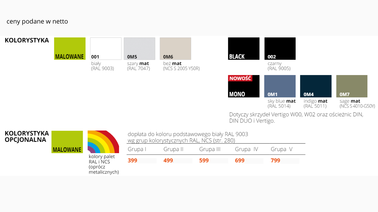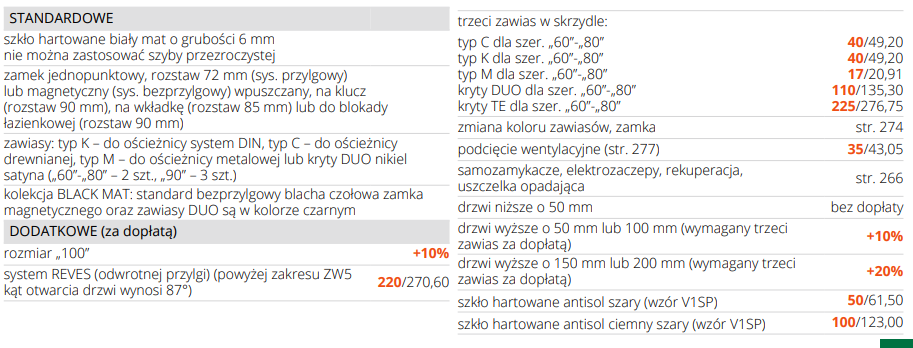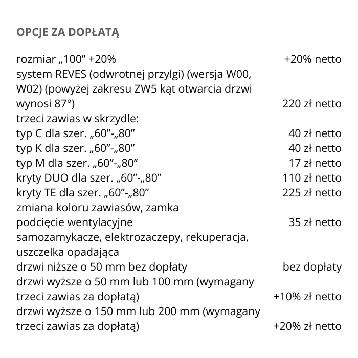 Możliwość wykonania za dopłatą w standardzie: bezprzylgowe, rewersyjne.