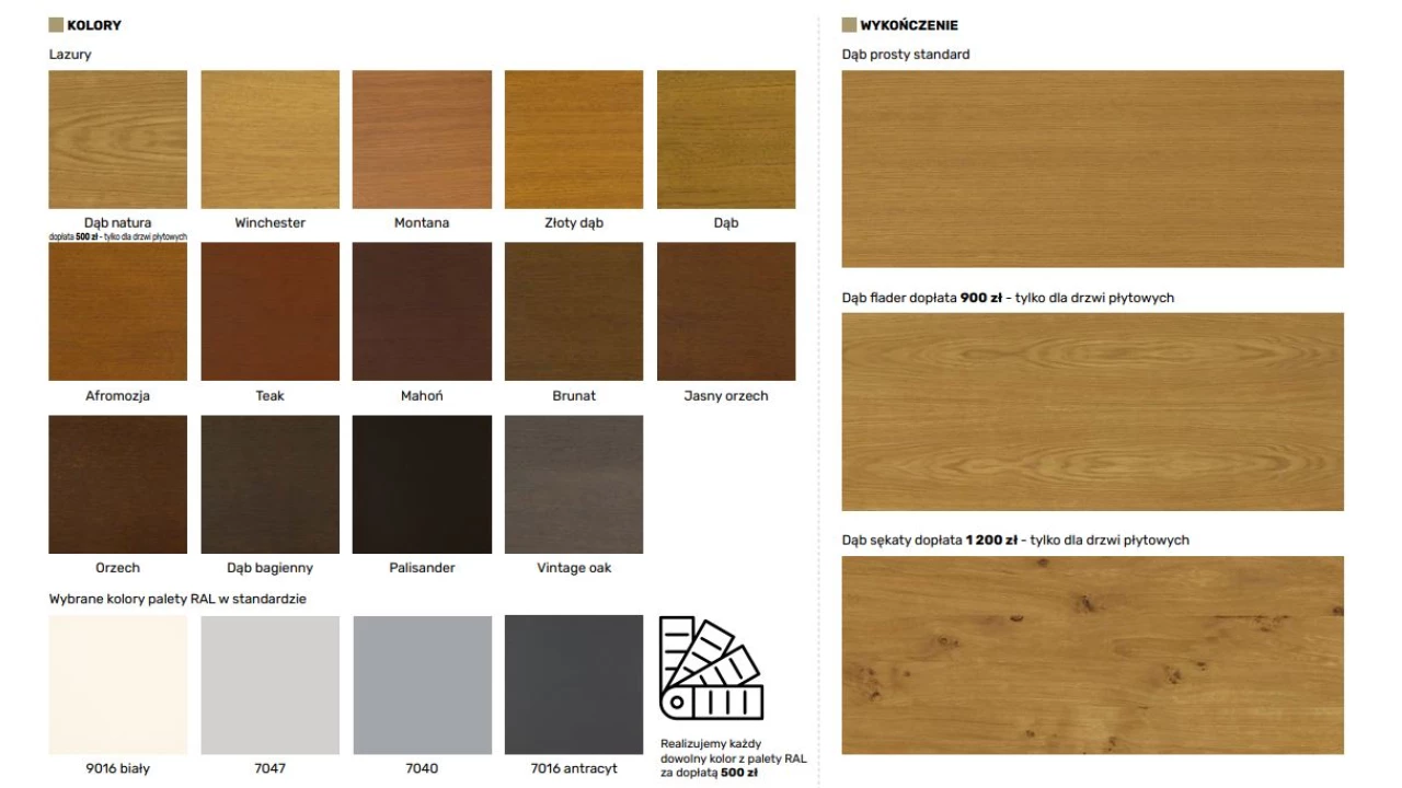 Cena dotyczy modelu wraz z ościeżnicą, okuciami i klamką.