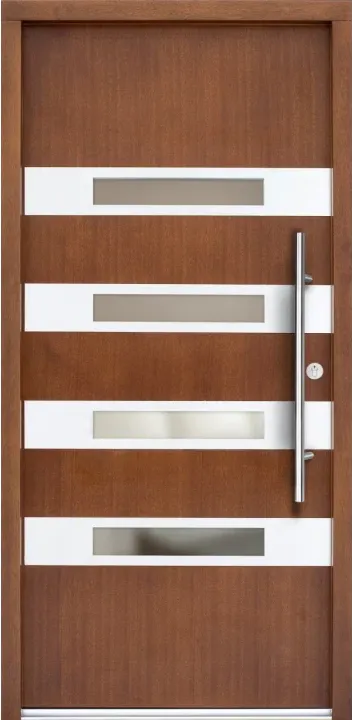 Drzwi zewnętrzne ERKADO to produkt dostosowywany w pełni do potrzeb Użytkownika. Wybór i możliwości są imponujące. Bogate wyposażenie w standardzie. Drewniana konstrukcja cieszy się niesłabnącą popularnością i zapewnia nam wytrzymałe drzwi na lata. Zawsze możesz jednak zmienić lub rozszerzyć parametry swoich nowych drzwi P i dostosować je według uznania. Tak naprawdę możesz zaprojektować wraz z nami swoje drzwi zewnętrzne. Szlachetne szczotkowane aluminium w połączeniu z naturalnym drewnem zapewnia wysoki design. Panel Inox dodatkowo zabezpiecza powierzchnię drzwi przed uszkodzeniami zewnętrznymi. Skrzydło sprzedawane jest zawsze w komplecie z drewnianą ościeżnicą. W przypadku szklenia, w standardzie montowany jest pakiet REFLEX jednak opcjonalnie jest do wyboru wiele pakietów szybowych jak lustro weneckie, antisol, szkło piaskowane oraz bezpieczne.