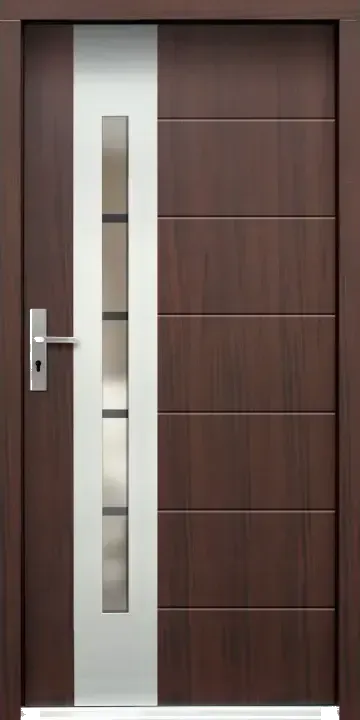 Drzwi zewnętrzne ERKADO to produkt dostosowywany w pełni do potrzeb Użytkownika. Wybór i możliwości są imponujące. Bogate wyposażenie w standardzie. Drewniana konstrukcja cieszy się niesłabnącą popularnością i zapewnia nam wytrzymałe drzwi na lata. Zawsze możesz jednak zmienić lub rozszerzyć parametry swoich nowych drzwi P i dostosować je według uznania. Tak naprawdę możesz zaprojektować wraz z nami swoje drzwi zewnętrzne. Szlachetne szczotkowane aluminium w połączeniu z naturalnym drewnem zapewnia wysoki design. Panel Inox dodatkowo zabezpiecza powierzchnię drzwi przed uszkodzeniami zewnętrznymi. Skrzydło sprzedawane jest zawsze w komplecie z drewnianą ościeżnicą. W przypadku szklenia, w standardzie montowany jest pakiet REFLEX jednak opcjonalnie jest do wyboru wiele pakietów szybowych jak lustro weneckie, antisol, szkło piaskowane oraz bezpieczne.
