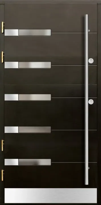 Drzwi zewnętrzne ERKADO to produkt dostosowywany w pełni do potrzeb Użytkownika. Wybór i możliwości są imponujące. Bogate wyposażenie w standardzie. Drewniana konstrukcja cieszy się niesłabnącą popularnością i zapewnia nam wytrzymałe drzwi na lata. Zawsze możesz jednak zmienić lub rozszerzyć parametry swoich nowych drzwi P i dostosować je według uznania. Tak naprawdę możesz zaprojektować wraz z nami swoje drzwi zewnętrzne. Szlachetne szczotkowane aluminium w połączeniu z naturalnym drewnem zapewnia wysoki design. Panel Inox dodatkowo zabezpiecza powierzchnię drzwi przed uszkodzeniami zewnętrznymi. Skrzydło sprzedawane jest zawsze w komplecie z drewnianą ościeżnicą. W przypadku szklenia, w standardzie montowany jest pakiet REFLEX jednak opcjonalnie jest do wyboru wiele pakietów szybowych jak lustro weneckie, antisol, szkło piaskowane oraz bezpieczne.