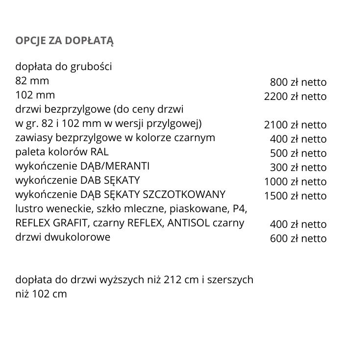 DĄB / MERANTI – za dopłatą: od 324 zł brutto