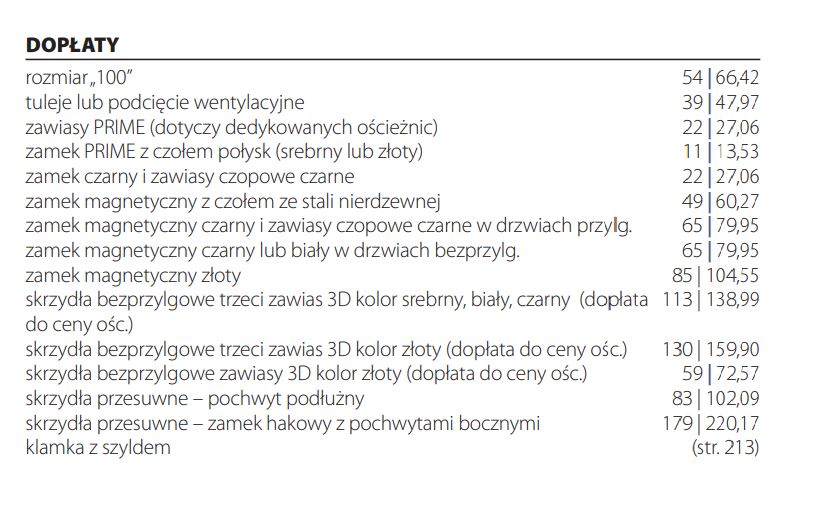 Możliwość wykonania za dopłatą w standardzie: bezprzylgowe, rewersyjne.