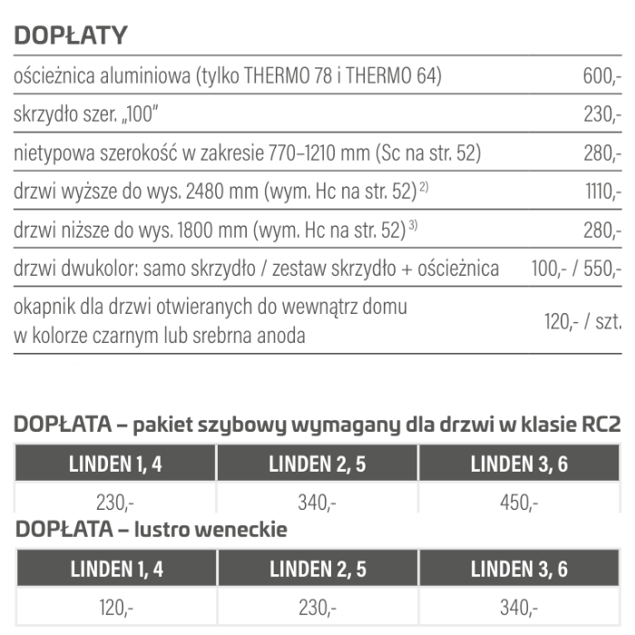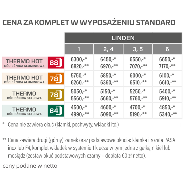 Drzwi dostępne w standardzie: THERMO 78 za dopłatą od 550 zł netto